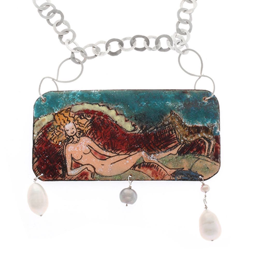 La Chateleine - vitreous fired enamel, sterling silver, cultured pearls