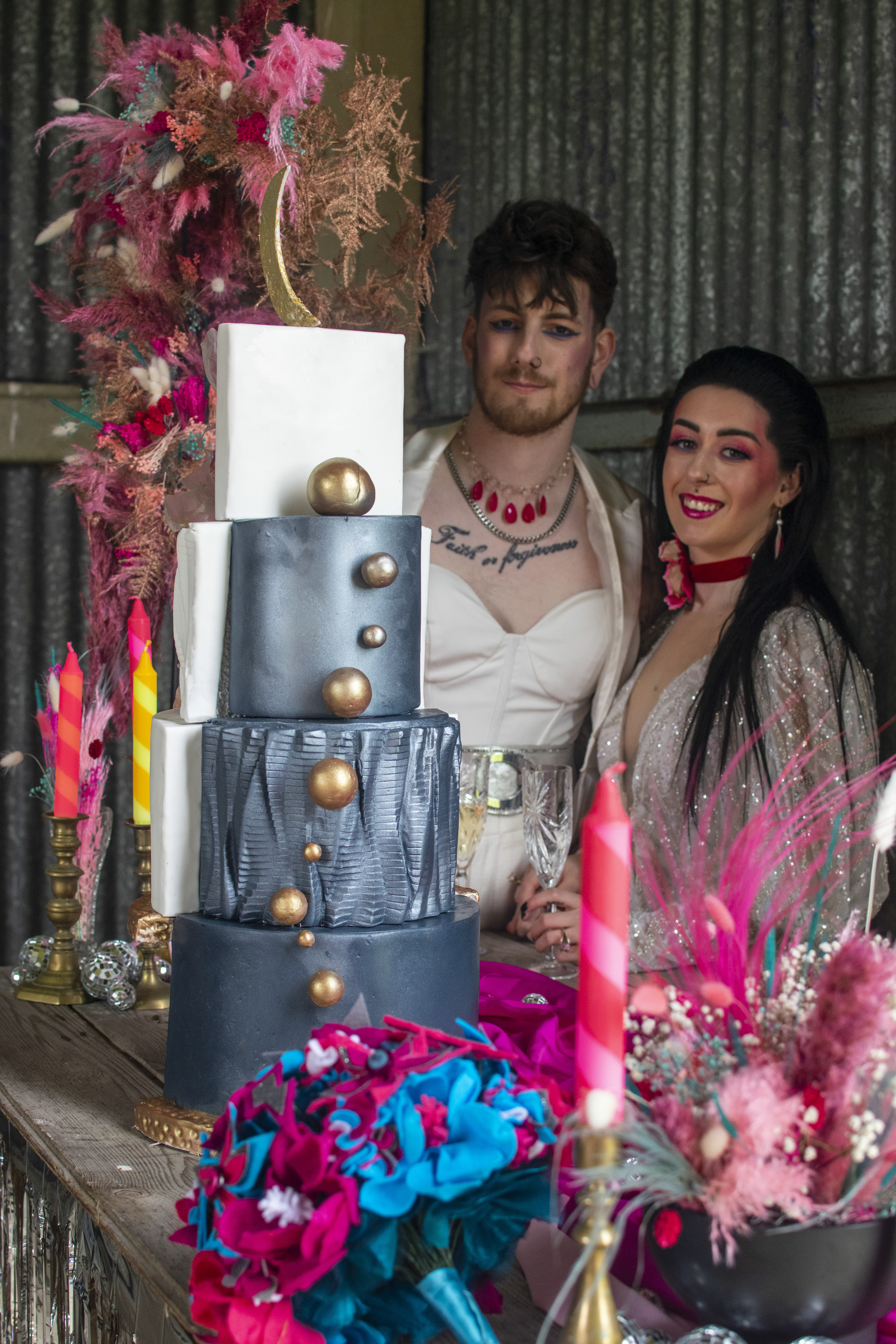 As a team of creatives, we wove together a little retro magic and a whisper of the future, painting the scene with striking shades of magenta, blue, and crisp white. The amazing Claire from Winter Peach Weddings guided the creative flow. Absolutely delighted to collaborate with a team of wonderful makers and visionaries.